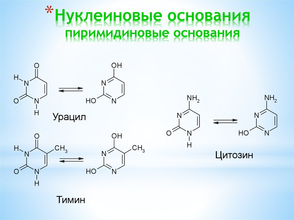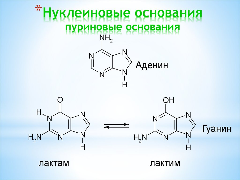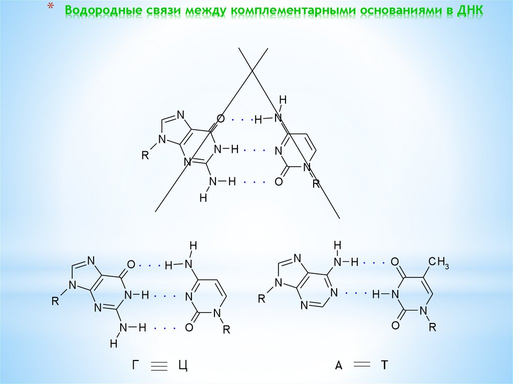 *Водородные связи между комплементарными основаниями в ДНК