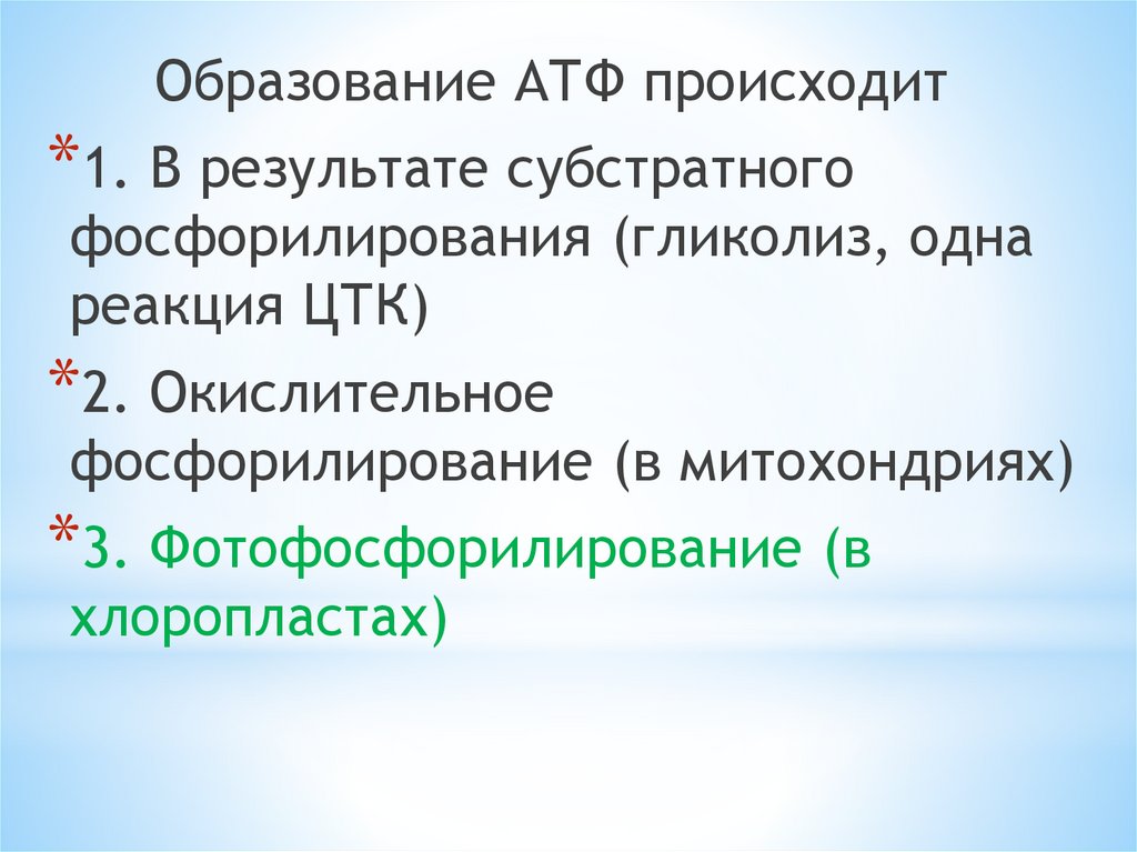 Образование АТФ происходит*1. В результате субстратного