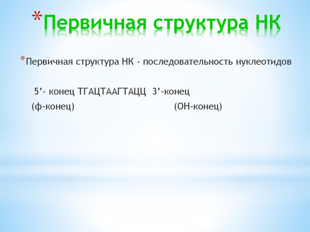 *Первичная структура НК* Первичная структура НК - последовательность нуклеотидов