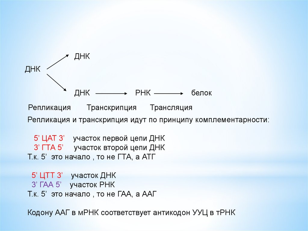 Репликация и транскрипция идут по принципу комплементарности: