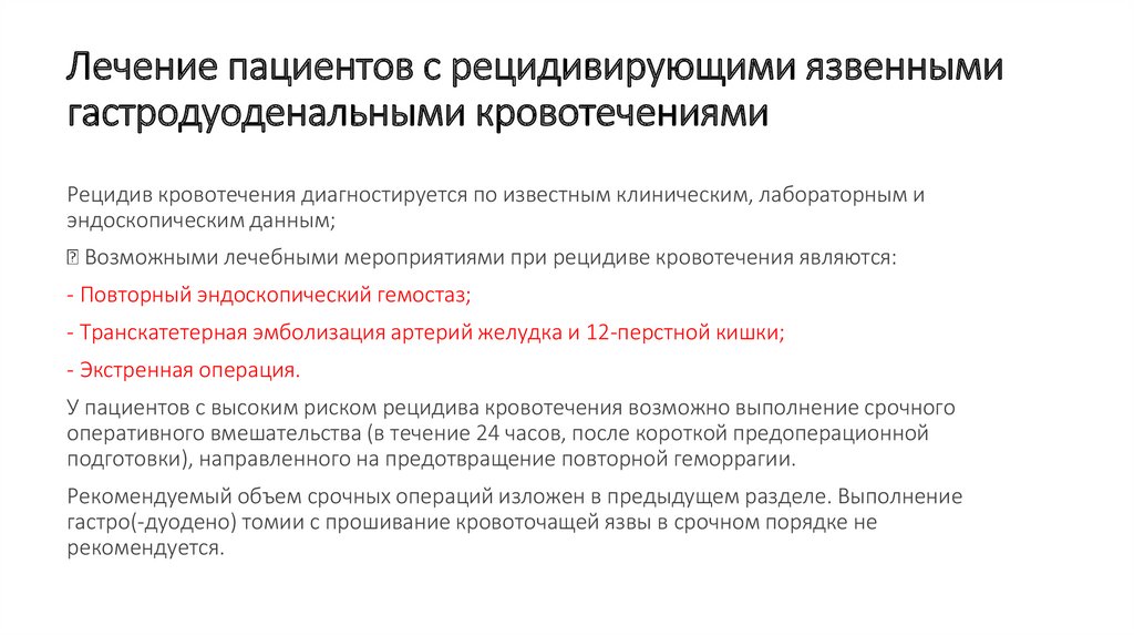 Лечение пациентов с рецидивирующими язвеннымигастродуоденальными кровотечениями