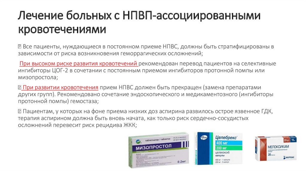 Лечение больных с НПВП-ассоциированнымикровотечениями