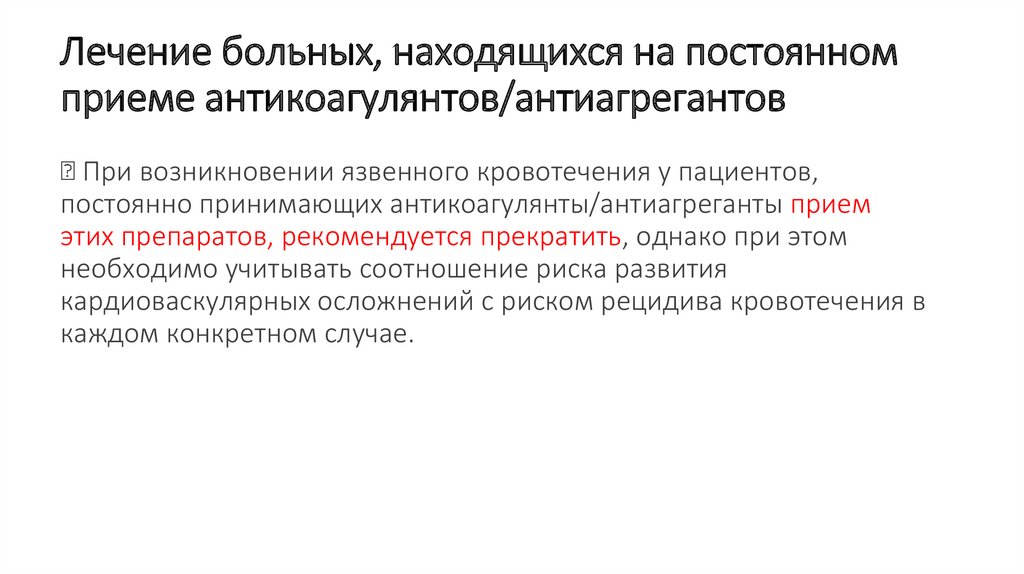Лечение больных, находящихся на постоянномприеме антикоагулянтов/антиагрегантов
