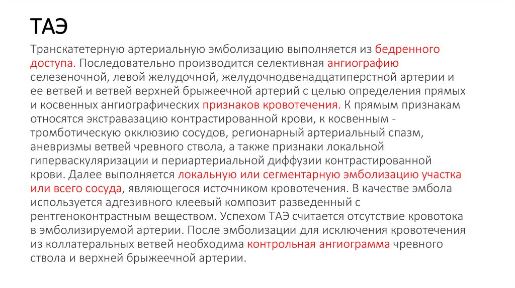 ТАЭТранскатетерную артериальную эмболизацию выполняется из бедренного