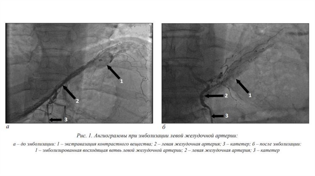 в эмболизируемой артерии. После эмболизации для исключения кровотечения