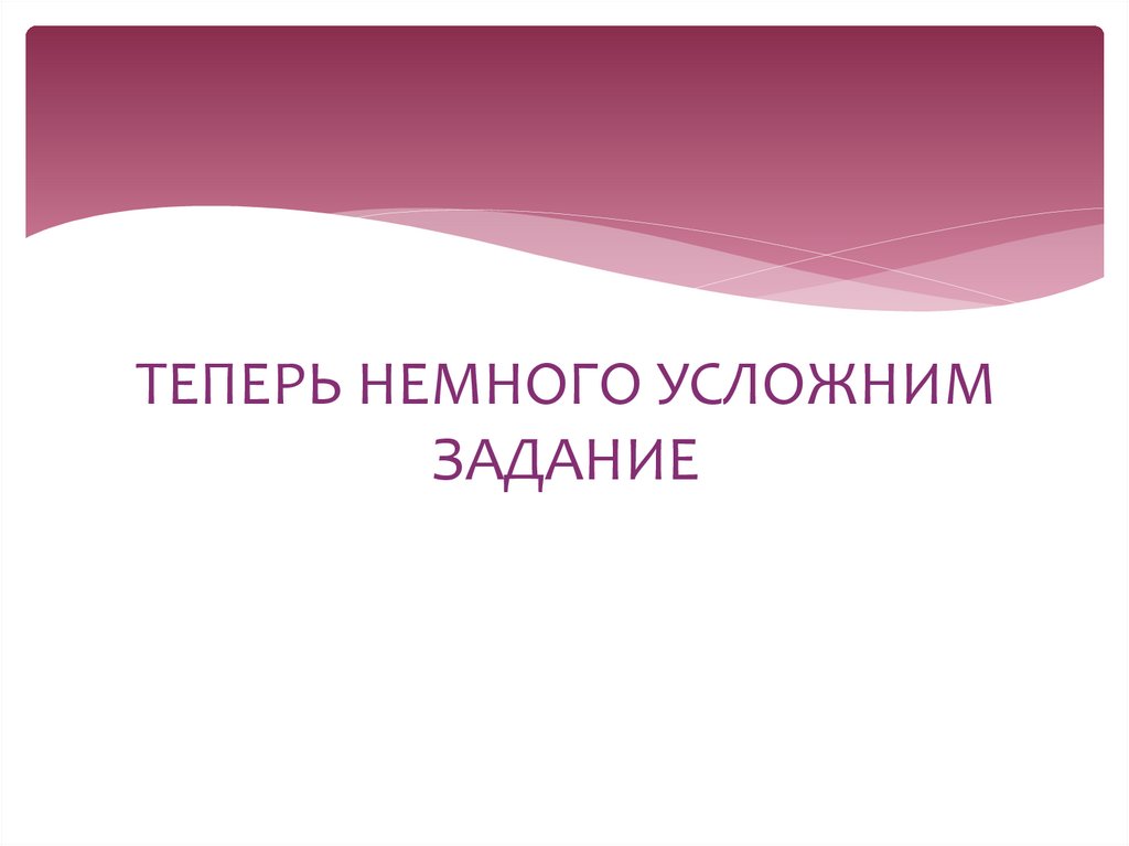 ТЕПЕРЬ НЕМНОГО УСЛОЖНИМЗАДАНИЕ