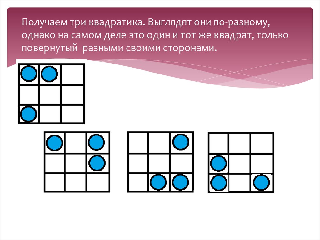 Получаем три квадратика. Выглядят они по-разному,однако на самом деле это один и тот же квадрат, только