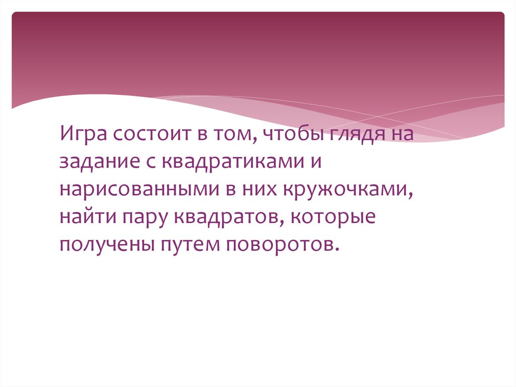 Игра состоит в том, чтобы глядя назадание с квадратиками и