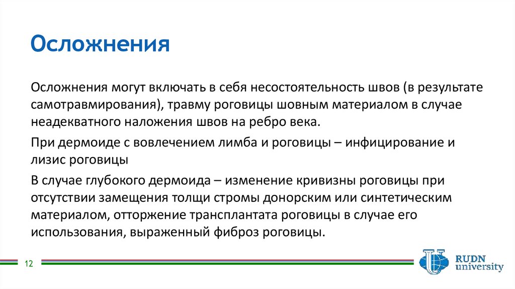 При дермоиде с вовлечением лимба и роговицы – инфицирование и