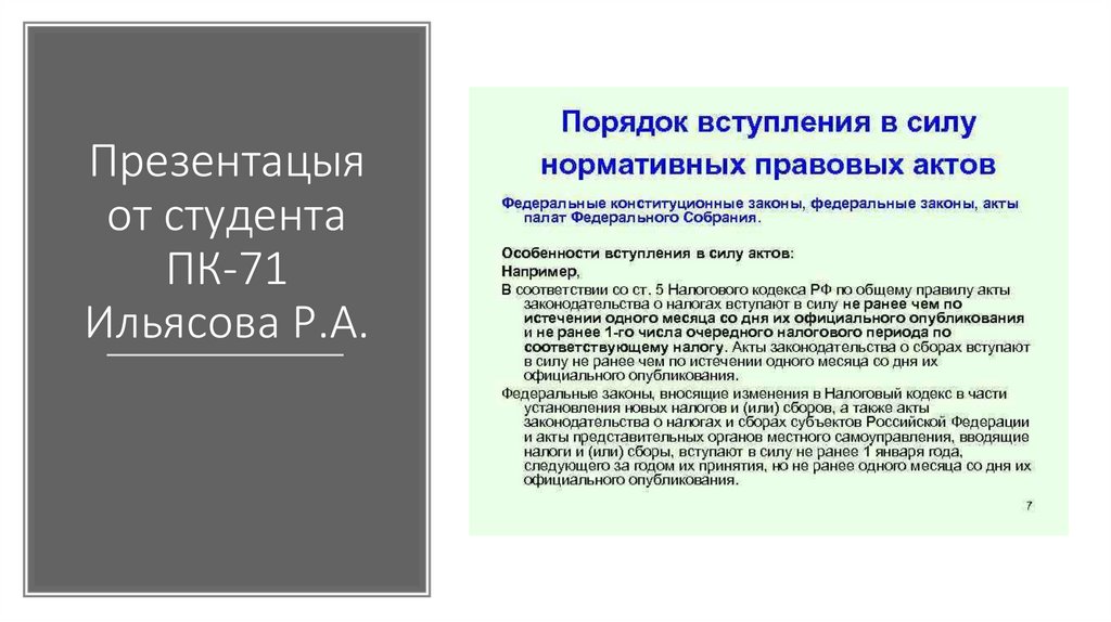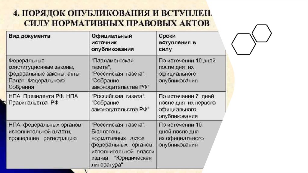 Порядок вступления в силу нормативных правовых актов