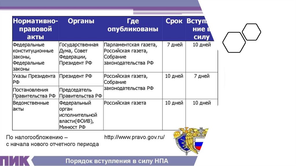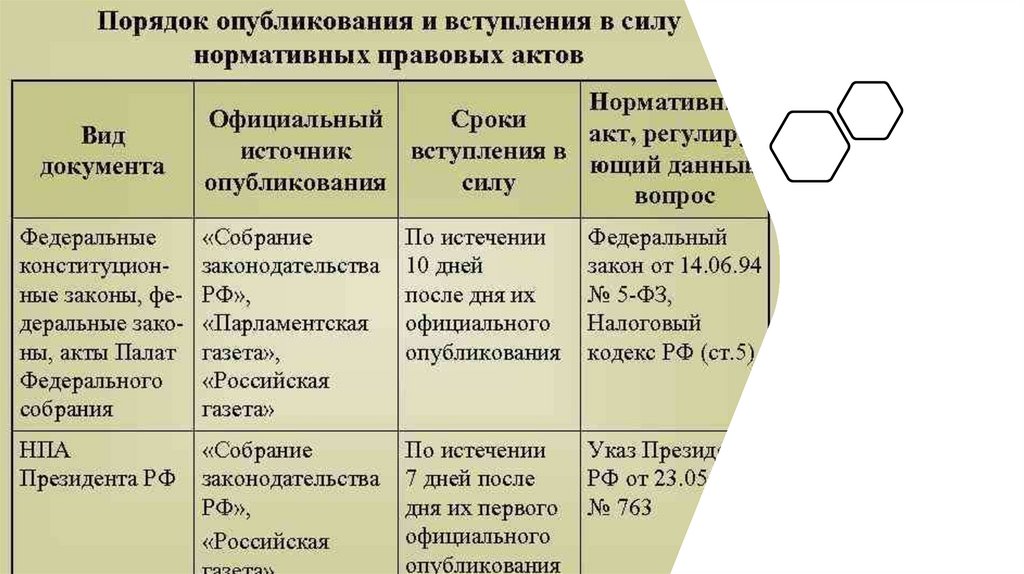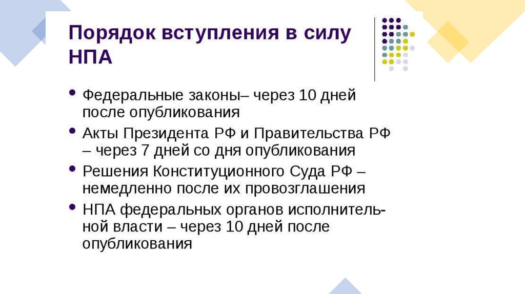 Порядок и особенности вступления в силу нормативных правовых актов