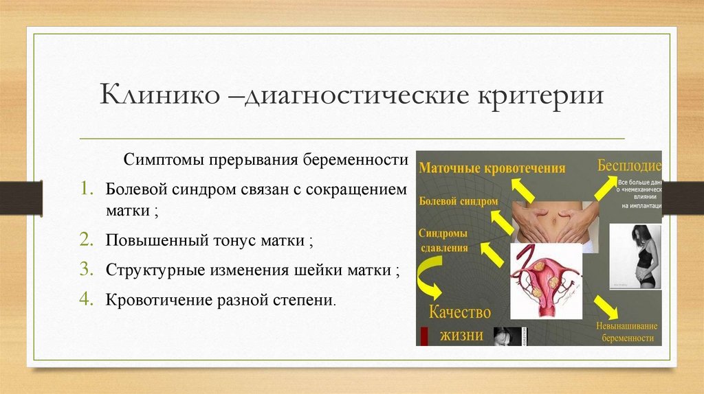 Клинико –диагностические критерииСимптомы прерывания беременности