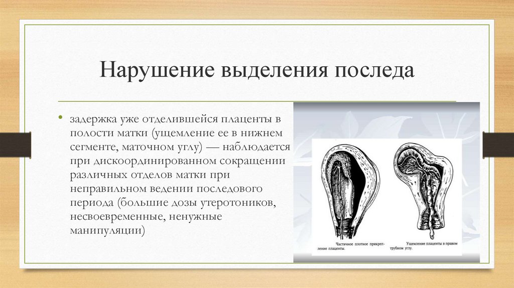 Нарушение выделения последа• задержка уже отделившейся плаценты в