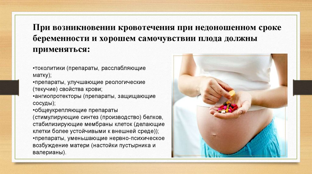При возникновении кровотечения при недоношенном срокебеременности и хорошем самочувствии плода должны
