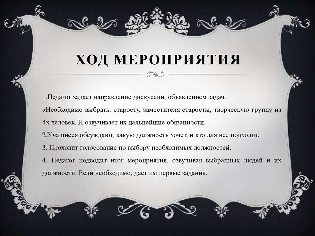 «Необходимо выбрать: старосту, заместителя старосты, творческую группу из