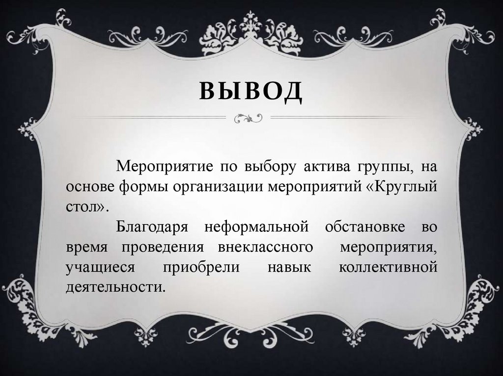 ВЫВОДМероприятие по выбору актива группы, на