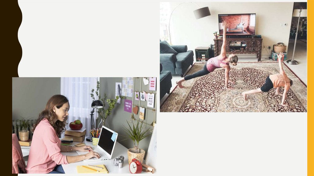 • 2) In some families, parents and children are now working out together in their living rooms.