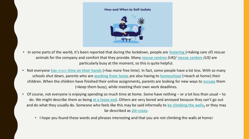 • I hope you found these words and phrases interesting and that you are not climbing the walls at home!