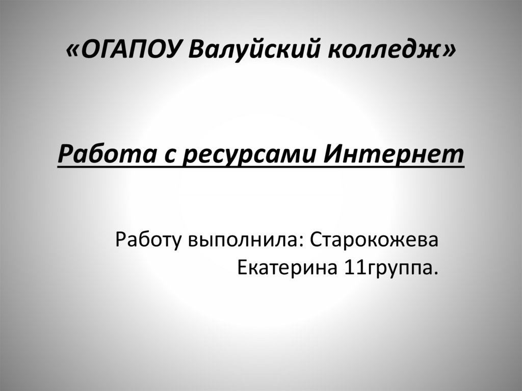 «ОГАПОУ Валуйский колледж»Работа с ресурсами Интернет