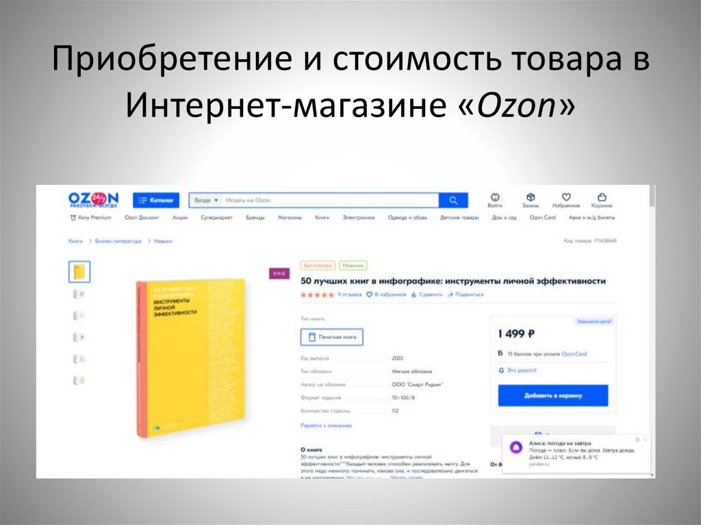 Приобретение и стоимость товара вИнтернет-магазине «Ozon»