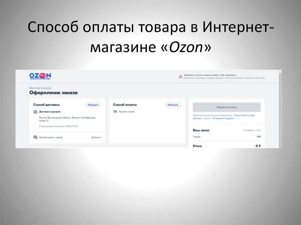 Способ оплаты товара в Интернетмагазине «Ozon»6.