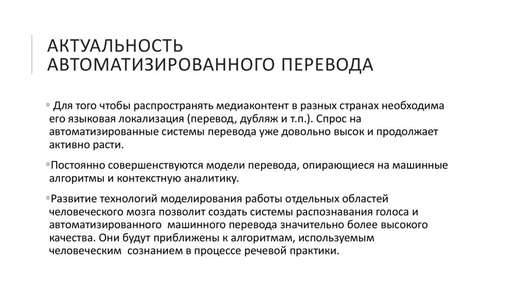 АКТУАЛЬНОСТЬАВТОМАТИЗИРОВАННОГО ПЕРЕВОДА