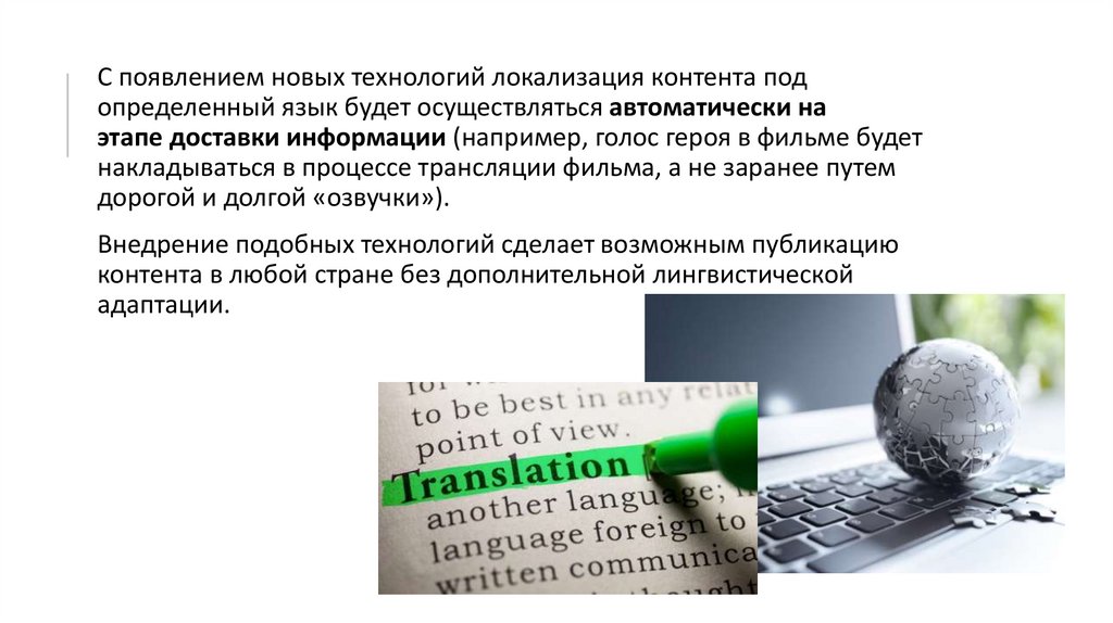 С появлением новых технологий локализация контента подопределенный язык будет осуществляться автоматически на