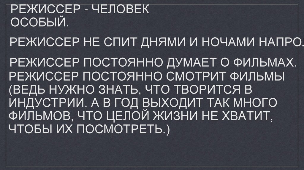 РЕЖИССЕР ПОСТОЯННО СМОТРИТ ФИЛЬМЫ