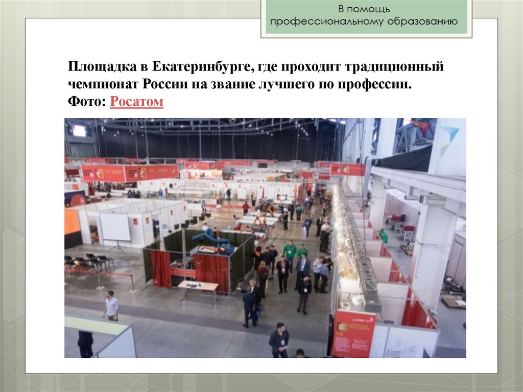 Площадка в Екатеринбурге, где проходит традиционныйчемпионат России на звание лучшего по профессии.