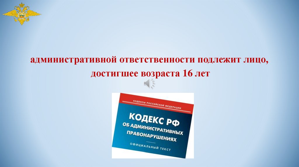 административной ответственности подлежит лицо,достигшее возраста 16 лет