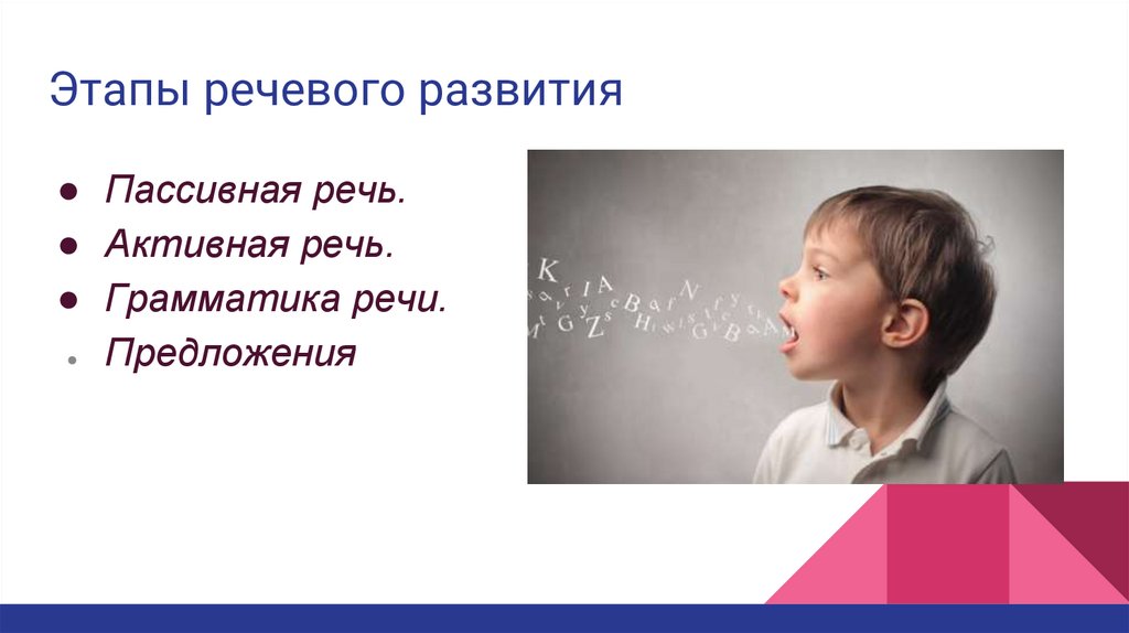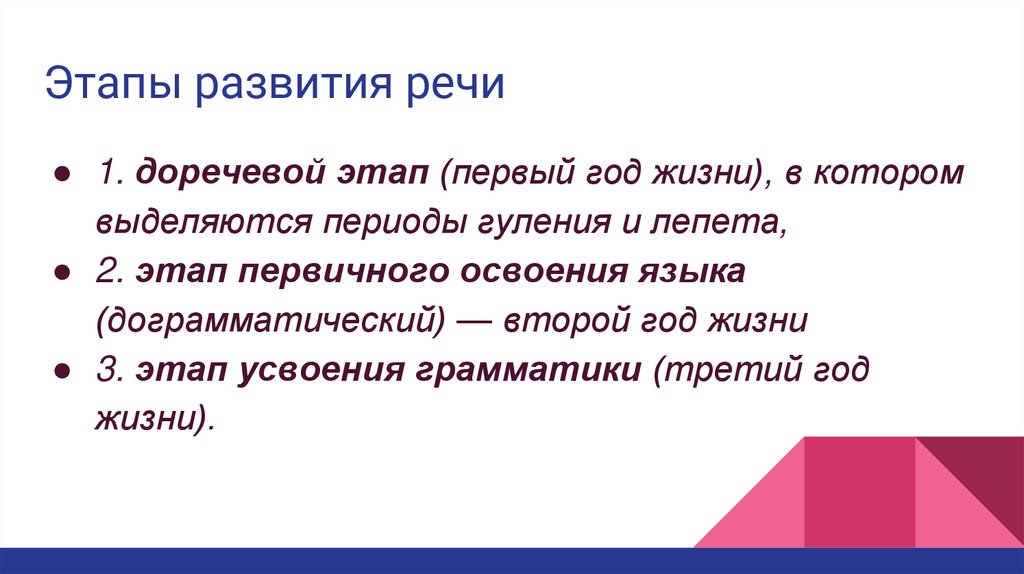 Этапы развития речи● 1. доречевой этап (первый год жизни), в котором