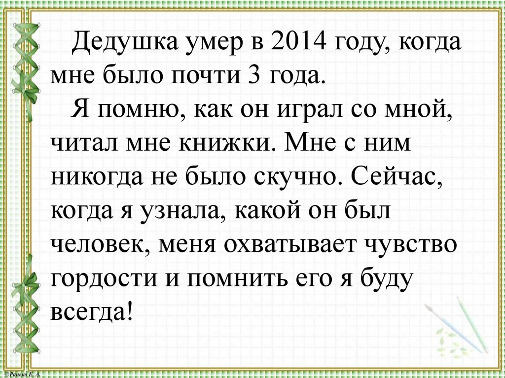 Дедушка умер в 2014 году, когдамне было почти 3 года.
