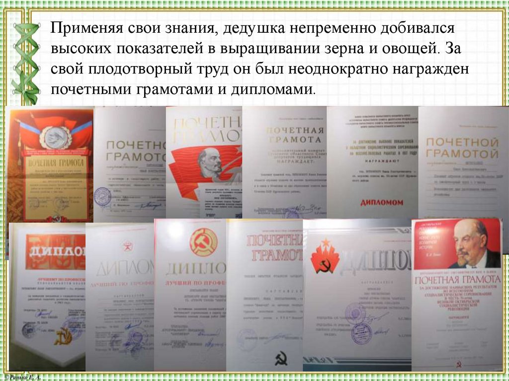 Применяя свои знания, дедушка непременно добивалсявысоких показателей в выращивании зерна и овощей. За