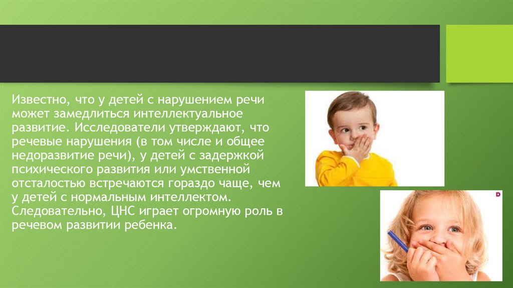 Известно, что у детей с нарушением речиможет замедлиться интеллектуальное