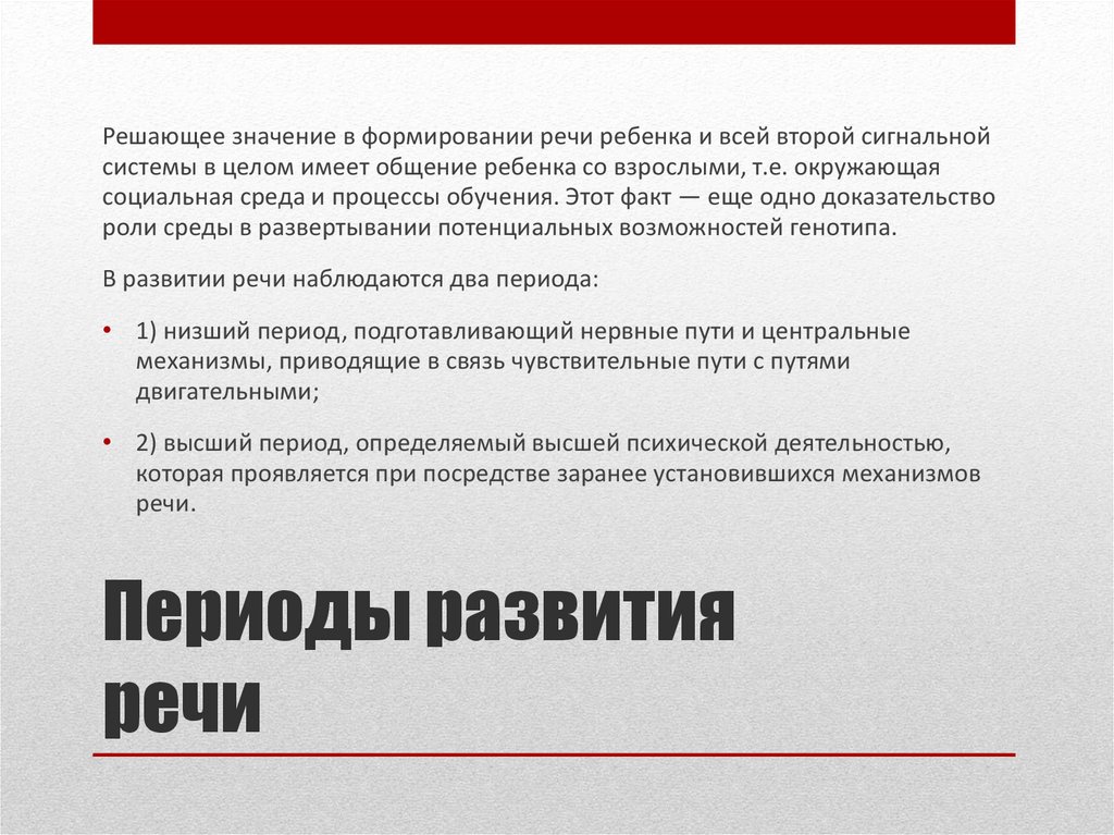 Решающее значение в формировании речи ребенка и всей второй сигнальнойсистемы в целом имеет общение ребенка со взрослыми, т.е. окружающая