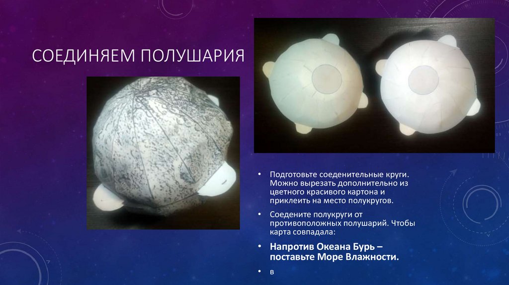 СОЕДИНЯЕМ ПОЛУШАРИЯ• Подготовьте соеденительные круги.