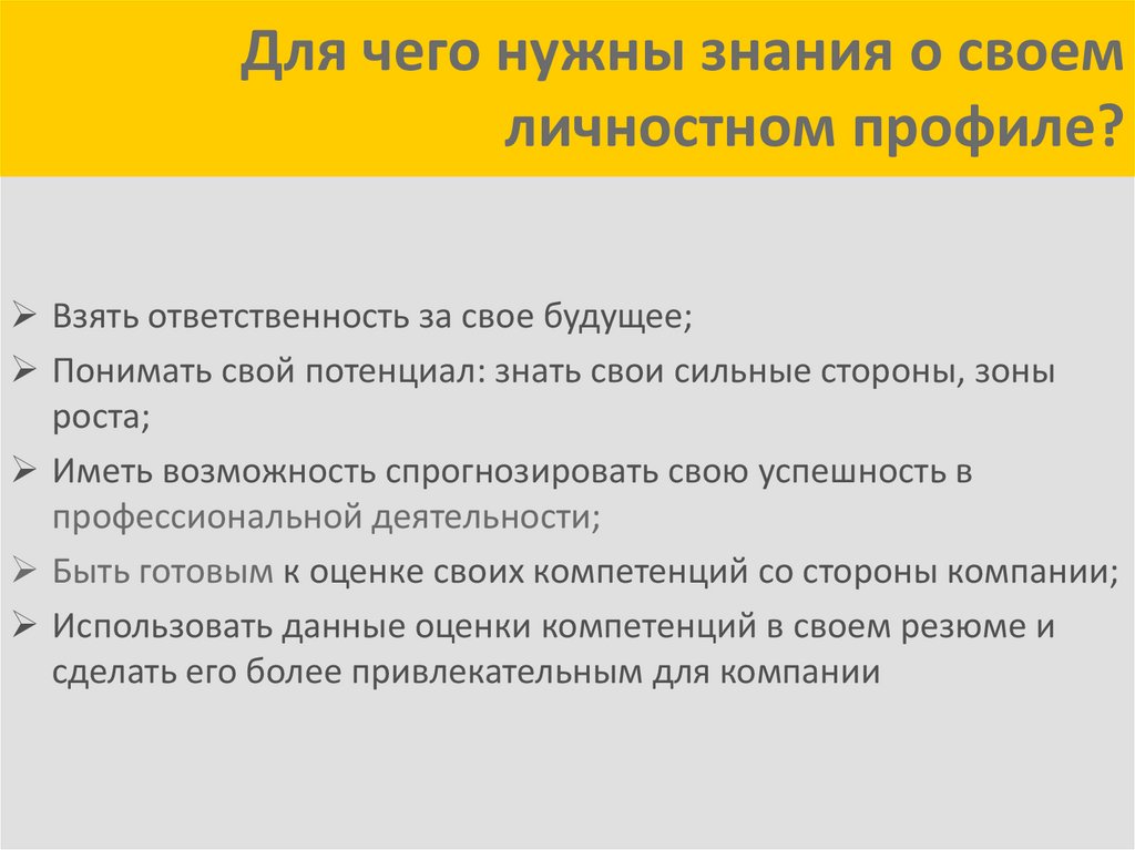 Для чего нужны знания о своемличностном профиле?