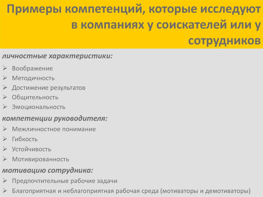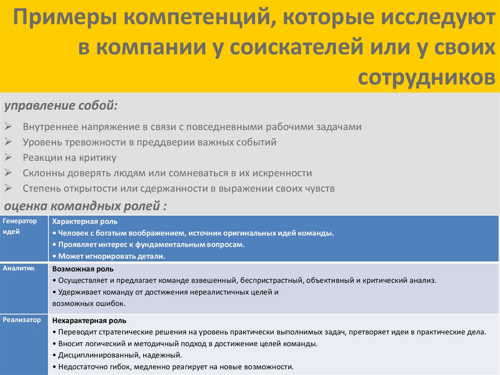 Примеры компетенций, которые исследуютв компании у соискателей или у своих