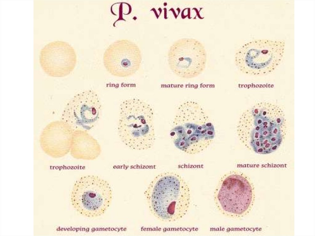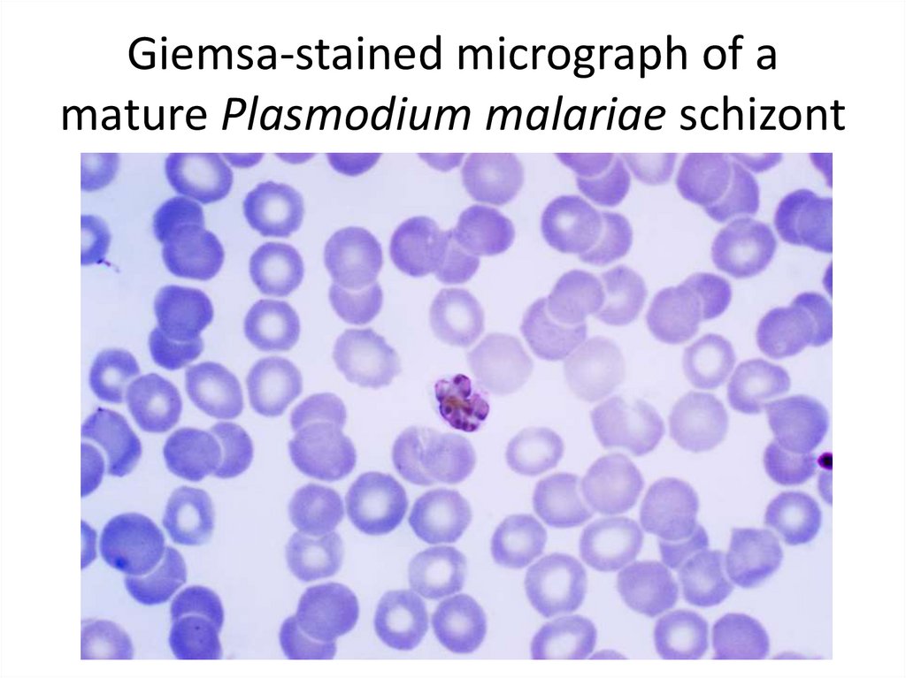 Giemsa-stained micrograph of amature Plasmodium malariae schizont