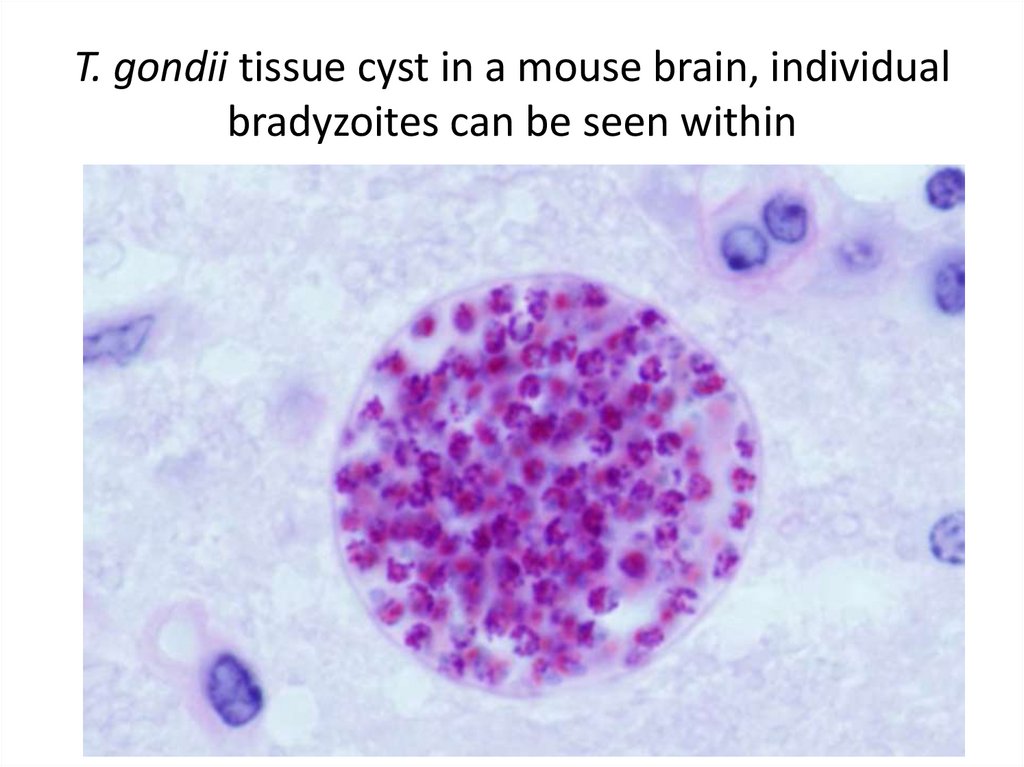 T. gondii tissue cyst in a mouse brain, individualbradyzoites can be seen within