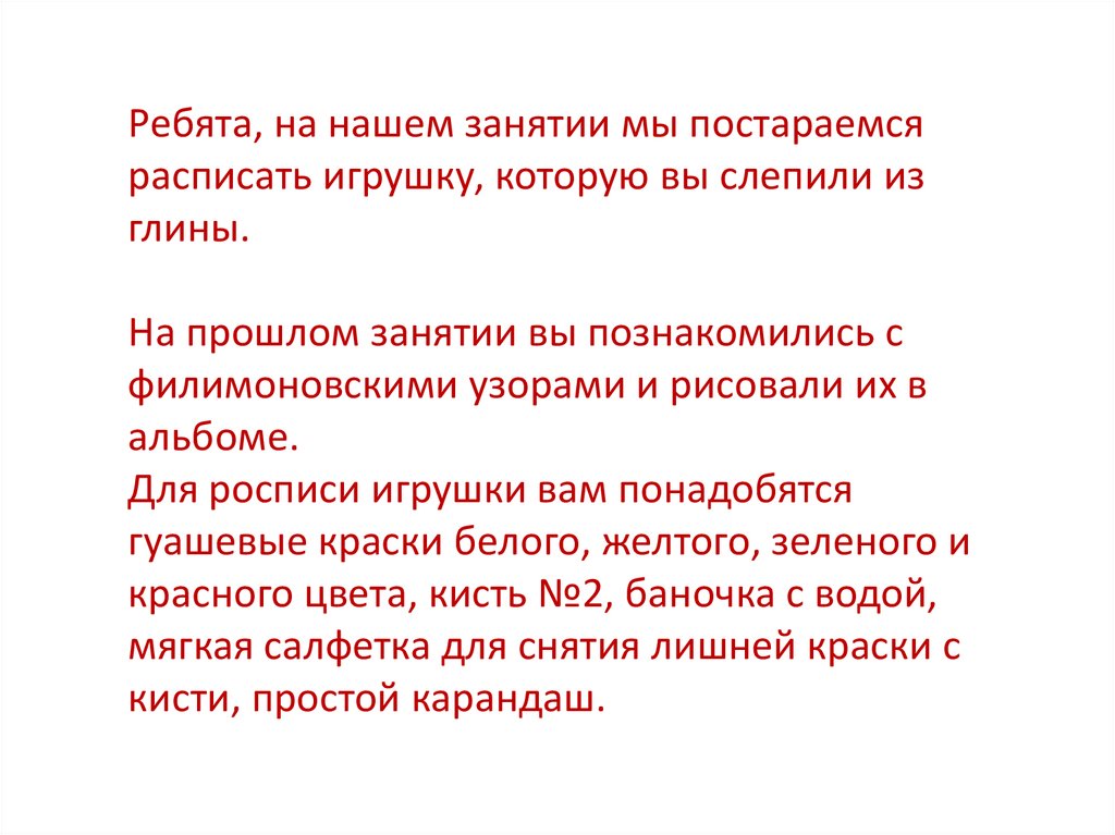 Ребята, на нашем занятии мы постараемсярасписать игрушку, которую вы слепили из