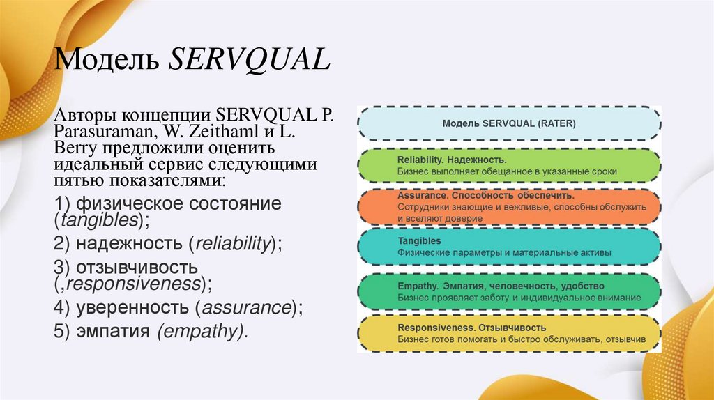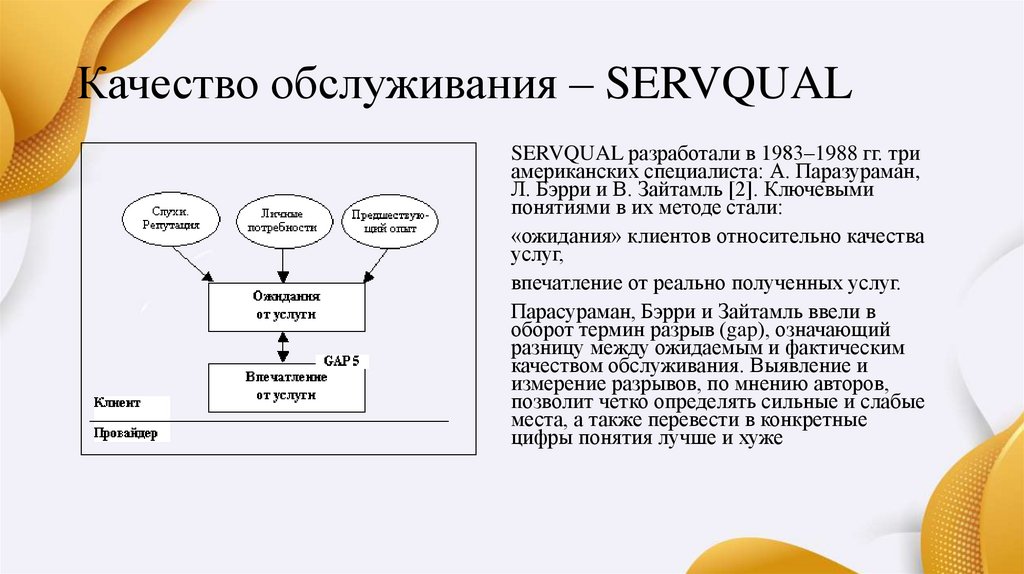 Качество обслуживания – SERVQUALSERVQUAL разработали в 1983–1988 гг. три