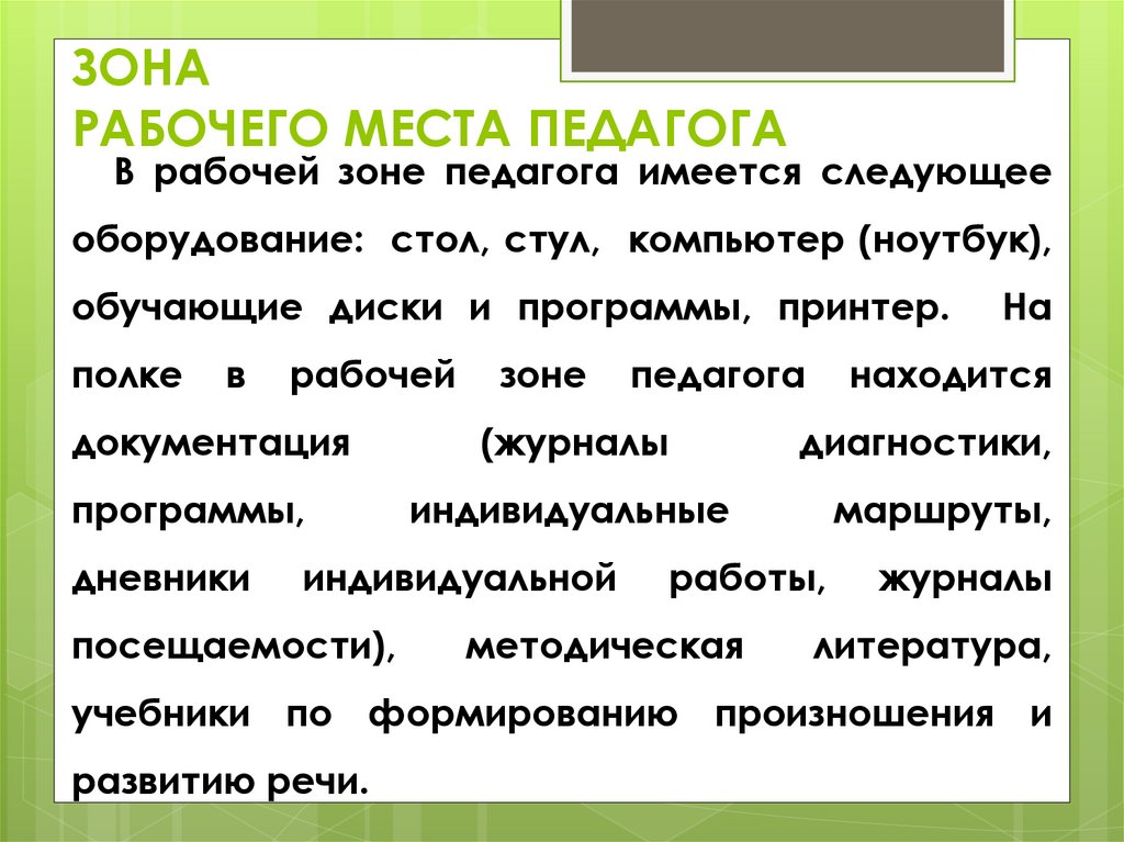 ЗОНАРАБОЧЕГО МЕСТА ПЕДАГОГА