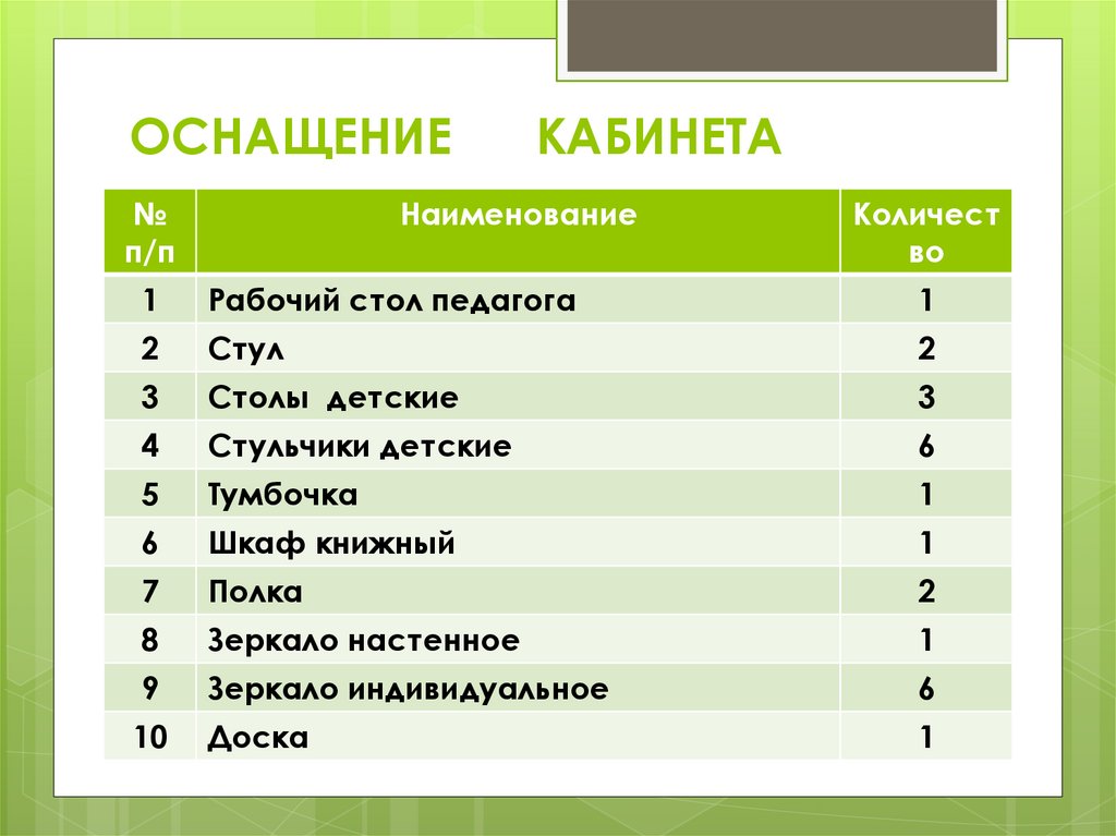 КОРРЕКЦИОННО-РАЗВИВАЮЩАЯСРЕДА КАБИНЕТА