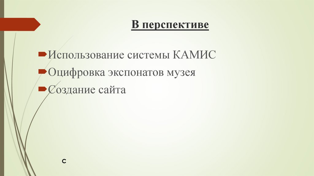 В перспективеИспользование системы КАМИС