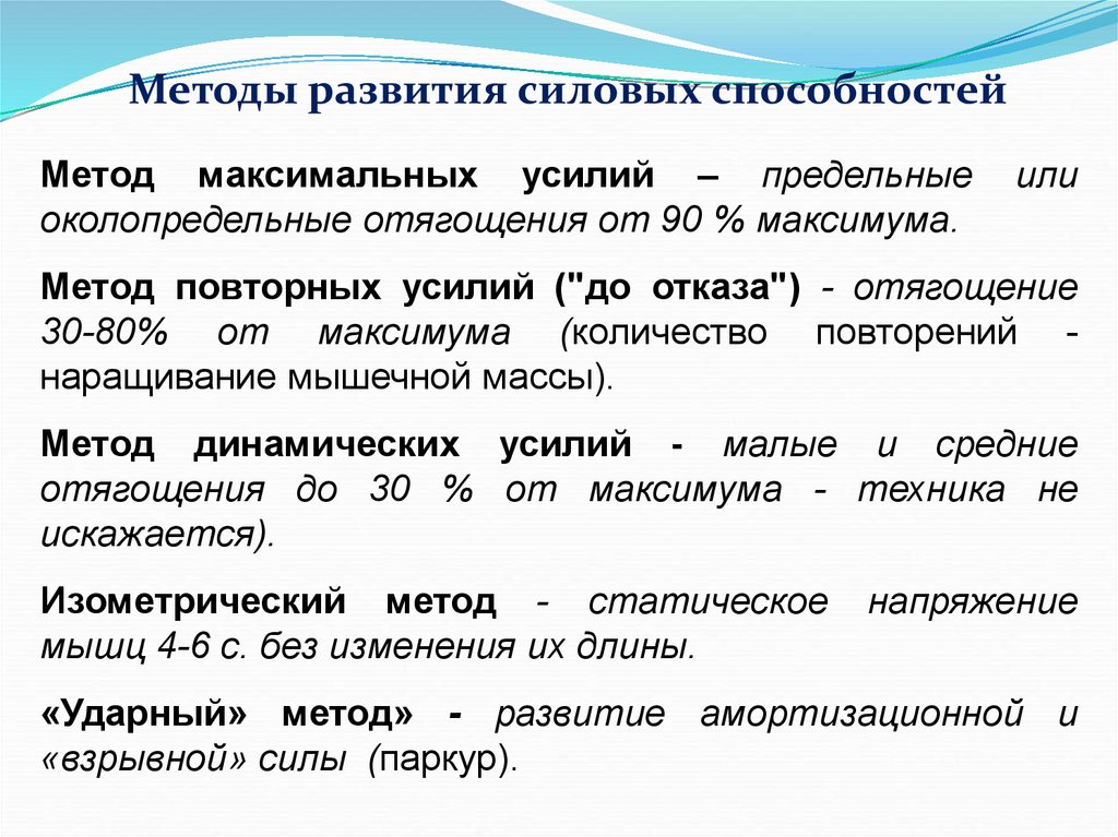 Методы развития силовых способностейМетод максимальных усилий – предельные