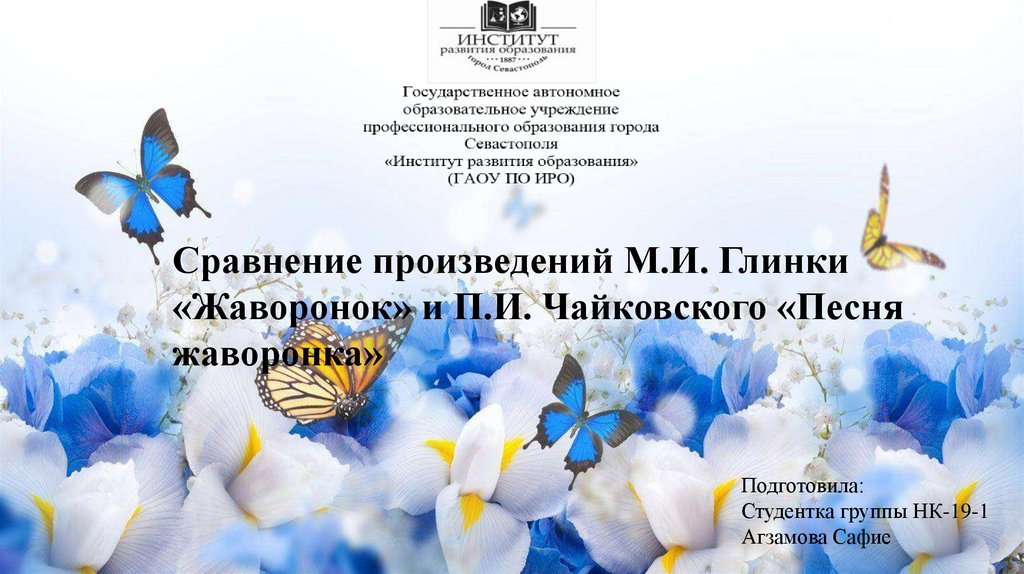 Сравнение произведений М.И. Глинки«Жаворонок» и П.И. Чайковского «Песня