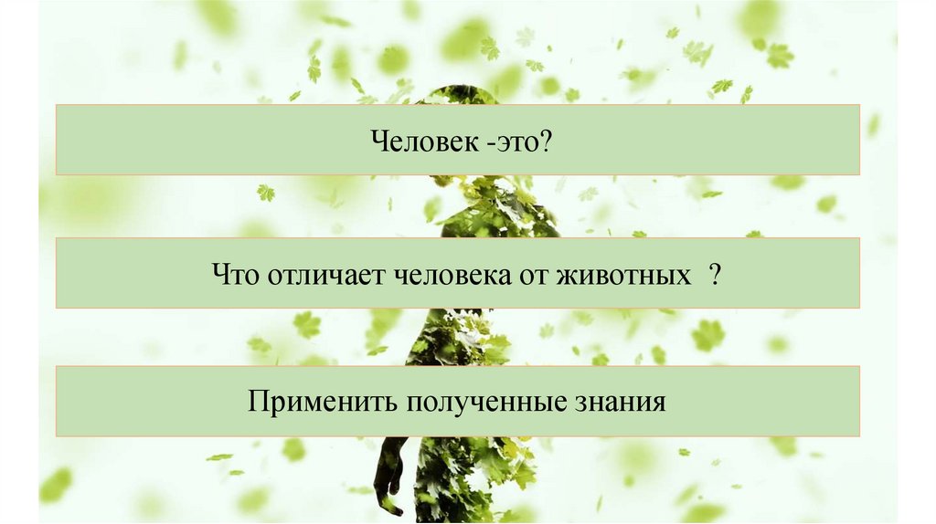 Что отличает человека от животных ?Применить полученные знания