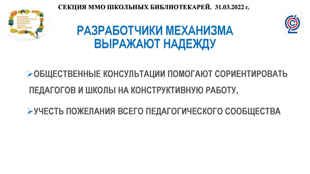 СЕКЦИЯ ММО ШКОЛЬНЫХ БИБЛИОТЕКАРЕЙ. 31.03.2022 г.РАЗРАБОТЧИКИ МЕХАНИЗМА