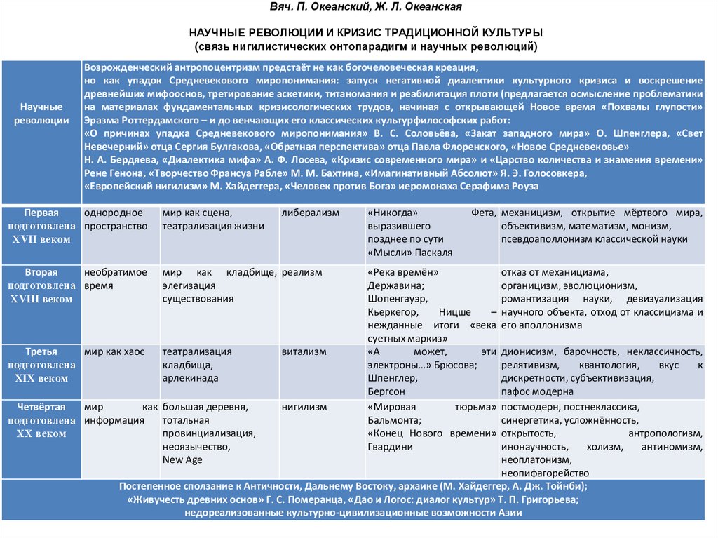 Вяч. П. Океанский, Ж. Л. ОкеанскаяНАУЧНЫЕ РЕВОЛЮЦИИ И КРИЗИС ТРАДИЦИОННОЙ КУЛЬТУРЫ